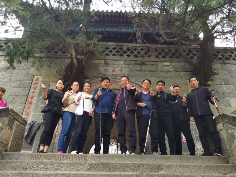 經(jīng)過團隊全體成員的堅持,跨越了無數(shù)個或急或緩的石階,從紅門到中天門,直到突破泰山最為險要的“十八盤”考驗,跨過南天門。接下來,短暫休整后,大家克服疲憊與酸痛,邁步直達玉皇頂。